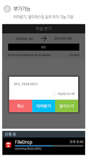 - 멀티태스킹 지원 (파일 전송 중에도 스마트폰 사용 가능)