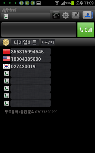 - '통화'버튼을 눌러 무료국제전화 시스템에 접속되는 순간부터 국내통화료가 발생됩니다.