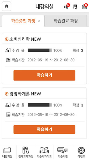 출석체크, 진도율을 모두 확인하실 수 있습니다.