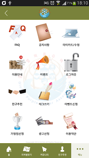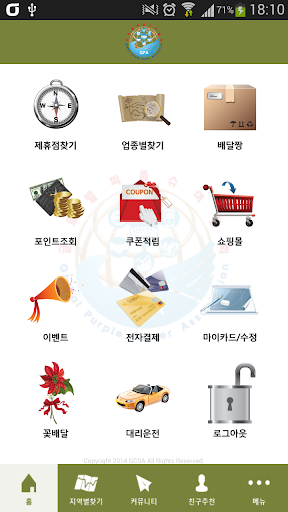 친구추천 , 전자결제 , 가맹점신청 , 광고신청 , 회원관리 , 대리운전 , 배달짱 , 전자상품권 ,
