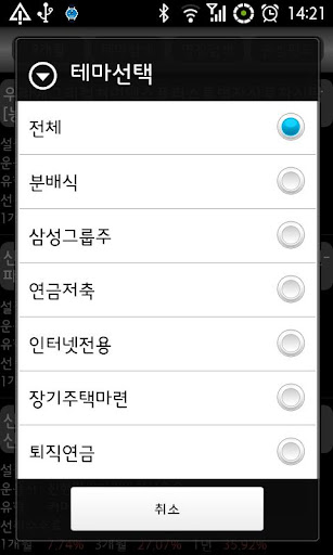 - 테마펀드별 검색, 펀드명 검색, 관심펀드 설정 가능