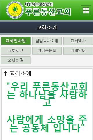 "우리 푸른동산교회는 하나님을 사랑하고