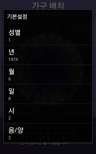 생일을 세팅후 잠자리 방향을