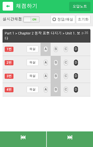 -문제풀이시 스마트폰에 직접 정답을 터치하세요. 자동으로 채점이 됩니다.(종이 OMR에 마킹할 필요도 연습장에 정답을 적거나 책에 정답을 표시할 필요도 없습니다.)