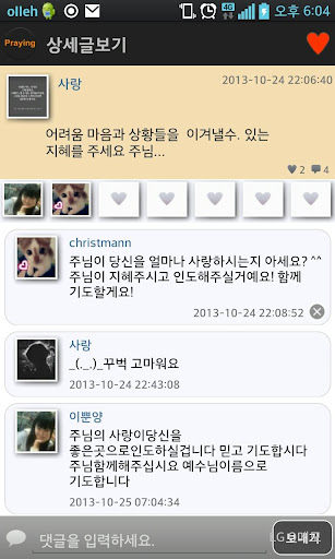 - 모든 사람들과 기도를 공유할 수 있습니다.