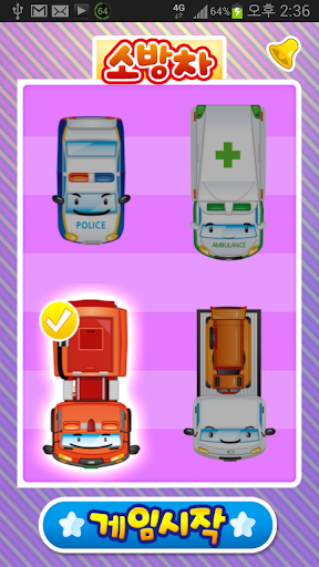 자녀의마음에 드는 자동차캐릭터를 고르고 스타트 버튼을 누르시면 게임이 시작되며 터치하여 자동차를 움직이면 별이 우수수~