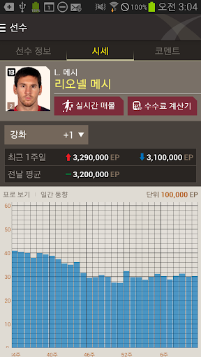 - 선수 정보에서 해당 선수의 강화별 시세 조회가 가능합니다.