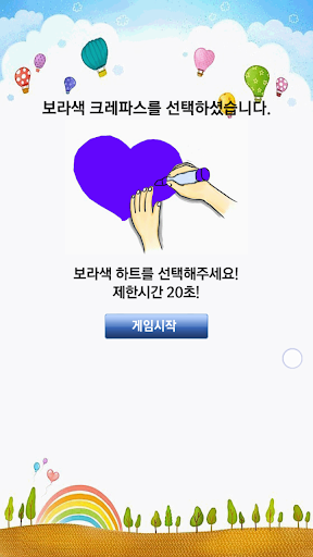 무지개 색상 가운데서 한가지 색상을 선택하고 이쁜 하트들 중에서 선택한 색상의 하트를 클릭해주면