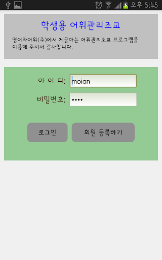 영어와어휘(주)에서 제공하는 학생용 어휘관리조교 프로그램입니다.