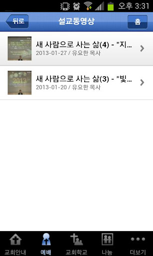 2. 예배 : 주일예배, 수요예배, 교회행사 영상, 찬양대 영상