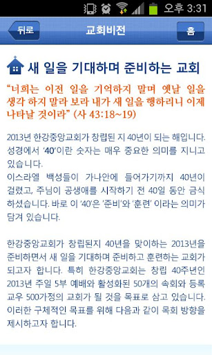 한강중앙교회는 감리교회의 창시자인 존 웨슬리의 이론을 바탕으로 한 기독교대한감리회에 소속된 교회입니다. 예수님과 구원에 대해서 알기를 원하거나, 믿음안에서 함께 성장하기를 원하는 분들은 언제든지 환영합니다.