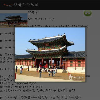 관광지, 문화시설, 축제/공연/행사, 여행코스. 레포츠, 숙박, 쇼핑, 음식 정보를 제공한다.