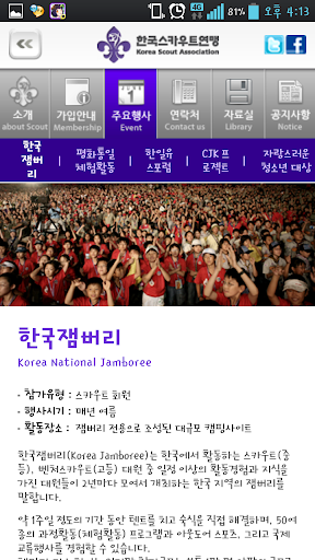 스카우트에 대해 궁금하신 학부모, 초임지도자, 일반인 여러분께 필요한 정보를 모은 안드로이드 공식 어플리케이션