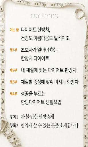 ▷ 한방차 다이어트의 기본 정보에서부터 식탐과 변비, 부종을 다스리는 법, 다이어트 성공을 부르는 생활요법까지! 한방 다이어트의 기본과 핵심을 모두 담았다.