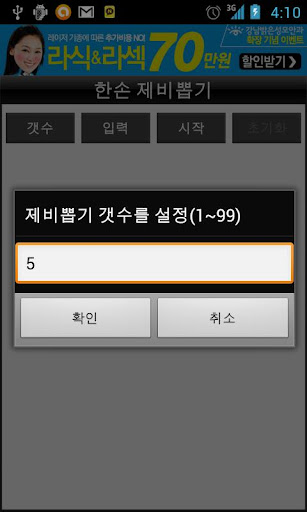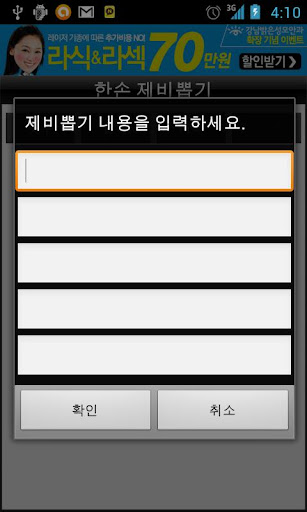원하는 갯수를 설정하고 내용을 입력하시고 시작 버튼을 눌러주면 랜덤으로 값을 뽑아 주는 제비 뽑기 어플 입니다.