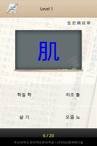 - 본 앱은 부산대학교 한의학전문대학원 채한 교수의 '한의학교육용 필수한자 1000자'를 사용하여 제작되었으며, 관련 저작권을 준수하고 있습니다.