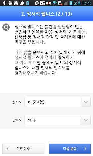 환경적, 지적, 직업적, 메디컬 웰니스 정도를 측정합니다.