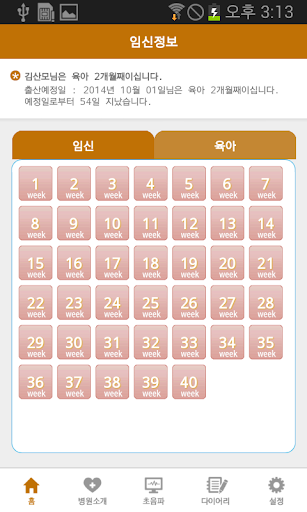 - 등록된 출산예정일에 따른 주차별 임신정보, 출산예정일, 비만도 정보를 확인할 수 있습니다.
