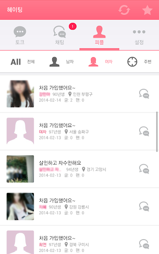 헤이팅에서는 지역만 설정해 놓으시면 주변친구, 동내친구뿐만 아니라 모든지역 서울,인천,경기,강원,대전,부산,대구,제주에 사는 친구를 사귈수 있습니다.