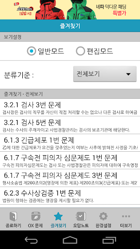 서울대 법과대학원생, 로스쿨생, 사법시험 합격자, 실무자의 검증을 거친 것으로 해설의 신뢰도를 더하였습니다. 각 기출지문과 주요지문에 대하여 관련판례와 조문을 적시하고, 필요한 해설을 배치함으로써 앱으로 공부하는 것이 지면으로 공부하는 것보다 훨씬 더 효율적인 학습이 될 수 있도록 하였습니다. 오답찾기와 즐겨찾기를 적절히 활용하면, 책으로 포스트잇을 붙이는 이상으로 효율적인 공부가 될 것입니다.
