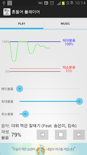 적당한 볼륨으로 음악을 듣고 싶으시면 흔들어 주세요.