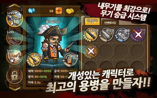 마법사와 라이플러같은 원거리 캐릭은 공격력이 강한대신 체력이 약하기 때문에 전략적인 플레이가 필요해요 ^0^.