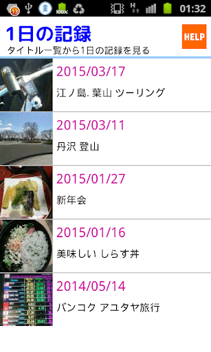1日の記録。写真とメモで1日の行動を記録します。旅行やツーリングに最適。海外旅行にも対応!1日4種類の通貨が記録できる簡易お小遣い帳機能も・・・