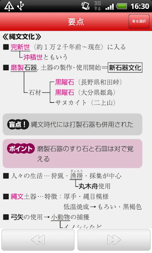 「要点を読む」メニューでは,問題を解かずに目的の要点だけを通しで読むことができます。読みたい箇所を目次から選んでください。「要点」画面の下部のキーで前後の要点を見ることができます。