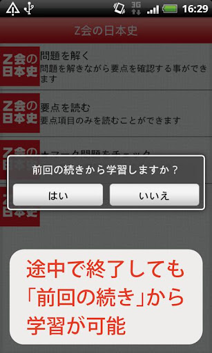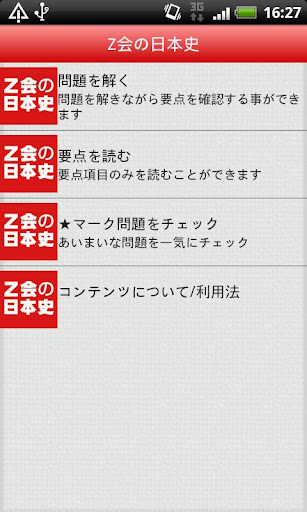 「Z会の日本史」は難関大学受験で定評のあるZ会の「入試に出る日本史B用語&問題2100」を元に,大人から受験生まで幅広い方に楽しみながら学習していただけるよう作成されたアプリケーションです。日本史用語問題を2055問収録。さらに理解が深まる詳細な要点・年表・地図等を収録。正解率表示機能も搭載しました。また,大学受験にも役立つよう,それぞれの問題には出題大学名と出題頻度を明記しました。