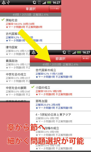 問題を解きながら,関連する「要点」を確認できます。なお,ごく一部関連する「要点」がない問題があります。「要点」から「問題」に戻る時は,端末の「戻る」キーで戻ることができます。