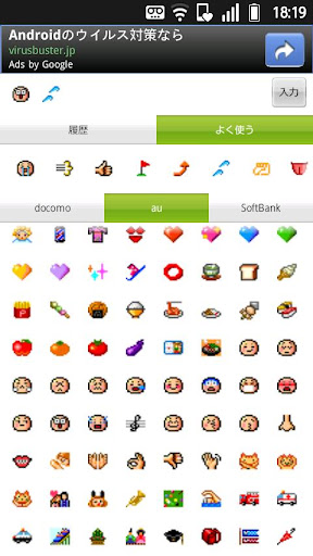 ・auの一部の絵文字で入力完了後、別のキャリアの別のアイコンに誤変換されるバグがありましたので、それらのアイコンは利用できなくなっている。