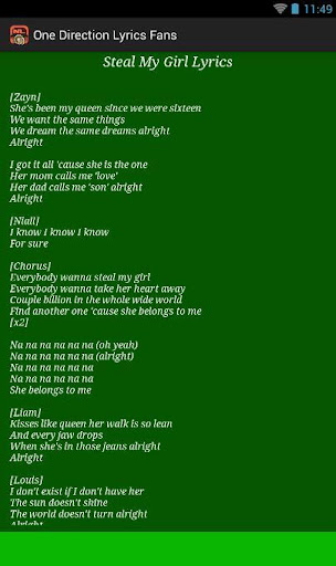 One Direction Lyrics Fans is the application that contains only the lyrics, everything in this application you can get for free. if you are a lover One Direction then the application is very helpful for you. Surely this application is very easy to use, you will click download and install this application, all free and very easy. All info from Lyric is what you get in this application and we are very pleased to enter and opinions from you about this application, please do not forget to give ratings for this app, thanks.