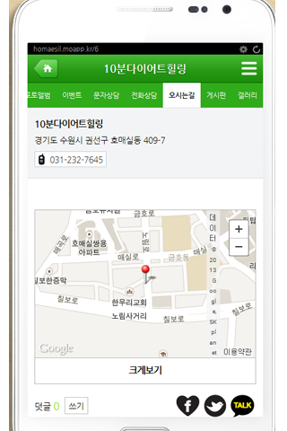호매실10분운동센타 모바일앱. 10분다이어트힐링, 수원시 권선구 호매실동 위치, 운동, 다이어트, 발마사지, 반신욕기, 엠마오등 운동제품 안내.
