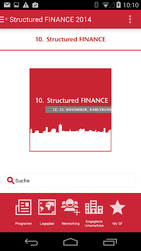 Die „SF App“ ist die offizielle App zur „10. Structured FINANCE“ am 12. und 13. November 2014 im Kongresszentrum Karlsruhe. Die „Structured FINANCE“ ist die Leitveranstaltung für CFOs und Treasurer mit über 1.700 angemeldeten Teilnehmern und knapp 100 Referenten in rund 80 Workshops und Panels.