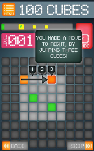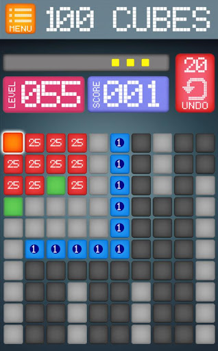 100 CUBES is a classical puzzle game where the player tries to fill all the squares in the level, based on a very basic set of movement rules. Danger lies close, however: as the game progresses, players find themselves cornered and unable to move. The success is measured by the number of moves they make before they inevitably get stuck.