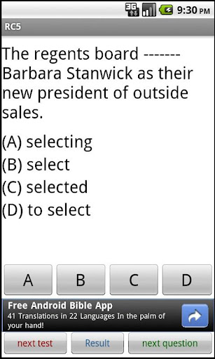 The READING part V – VI with database over 1000 questions. For each test, questions will be “Randomly” selected from our database of over 1000 different questions everytime you click. This means You will have unlimited TEST for you to praticce. We hope that this app will help you not only improve your listening skill but also reading skill each day. And the most importance is you will get a high score for TOEIC test.