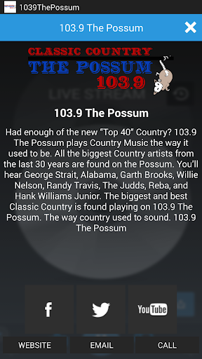 Had enough of the new “Top 40” Country? 103.9 The Possum plays Country Music the way it used to be. All the biggest Country artists from the last 30 years are found on the Possum. You’ll hear George Strait, Alabama, Garth Brooks, Willie Nelson, Randy Travis, The Judds, Reba, and Hank Williams Junior. The biggest and best Classic Country is found playing on 103.9 The Possum. The way country used to sound. 103.9 The Possum
