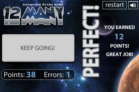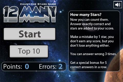 Now you can count them. The screen flashes quickly and it asks you how many stars you seen. Can get quite challenging in the 12 Many flash game. It will test your visual skills as well as your memory.