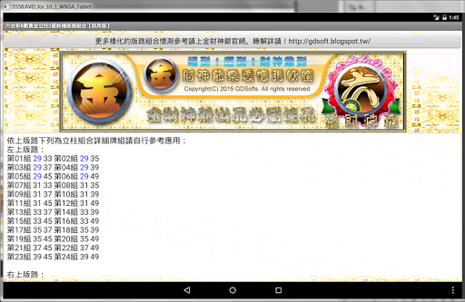 所謂8數2星說明:8個號碼以立柱4數X2列共8個號碼再搭配獨特特殊金財神爺算試組合2星而生成的號碼組合。金財神爺出品,品質保證。六合彩8數黃金立柱2星終極版路組合,本試用版限制為按【下一期】只能到獎號前三期止,無法按到當期。主旨為可按【上一期】向上比對歷史以黃金比率版路組合效果之用。意者請支持正版購買六合彩8數黃金立柱2星終極版路組合。展示畫面為【六合彩8數黃金立柱2星終極版路】搭配立柱版面畫面。自動更新獎號隨開即可參考期期都可比對結果,操作簡單易懂並結合特殊版路專攻二星用戶設計出好用軟體。
