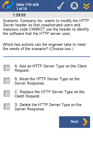 This free app includes 10 questions and answers from Citrix 1Y0-A28 exam, with additional questions available for download. It simulates a real 1Y0-A28 exam environment with latest questions and correct 1Y0-A28 exam answers.