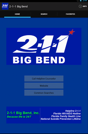 2-1-1 Big Bend is also the Florida statewide hotline provider for those seeking HIV/AIDS information (800-352-2437) and family health information (800-451-2229).