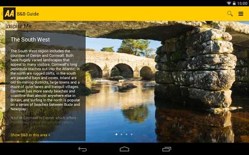 The AA has over one hundred years of experience in seeking out, assessing and recommending the best places to eat and stay in the country. The 2014 AA Bed & Breakfast Guide app features thousands of recommended and inspected guest accommodation, from cosy rural farmsteads to smart city centre guest houses; and from trendy B&B's to country inns.