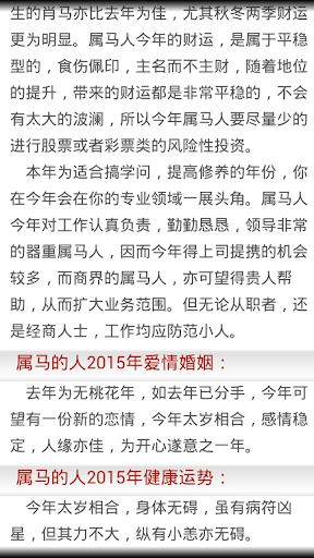 要想知道2015年需要注意哪些方面,2015年是否适合创业,2015年桃花运怎样,就下载这个软件测测吧!