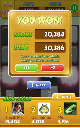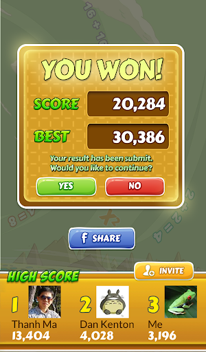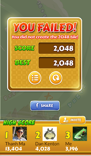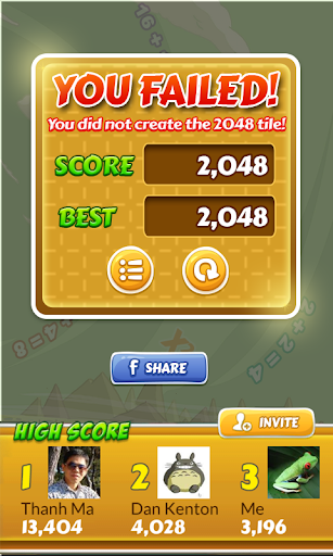 - Display the high score of friends who authorised to 2048 Fibonacci.