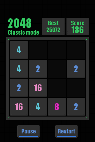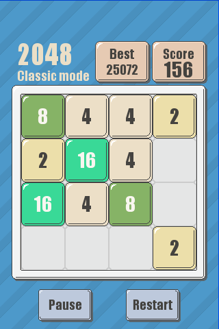 Swipe (or touch the screen) to move the all tiles. When two tiles with the same number touch they merge into one. You win when 2048 tile is created.