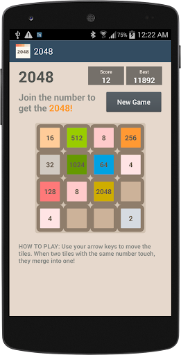 - Swipe left/right/up/down to move tiles, same numbers will merge together.