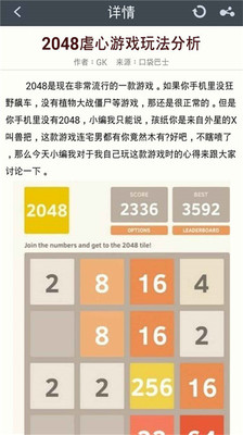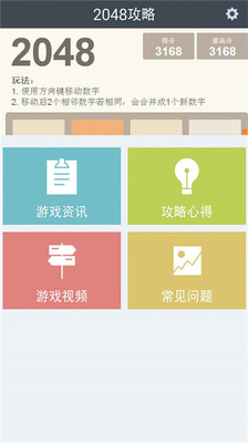 《2048》游戏规则很简单,每次可以选择上下左右其中一个方向去滑动,每滑动一次,所有的数字方块都会往滑动的方向靠拢外,系统也会在空白的地方乱数出现一个数字方块,相同数字的方块在靠拢、相撞时会相加。系统给予的数字方块不是2就是4,玩家要想办法在这小小的16格范围中凑出“2048”这个数字方块。天天看攻略特此为大家带来2048的游戏攻略,除了游戏的图鉴讲解外,小编还整理了游戏的相关资讯和大神们玩游戏的攻略心得!欢迎大家下载使用哦!