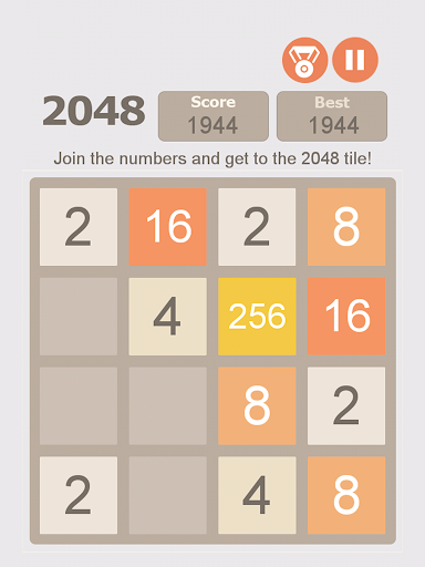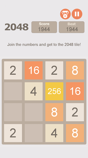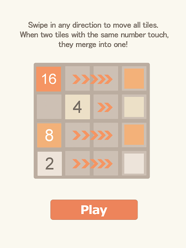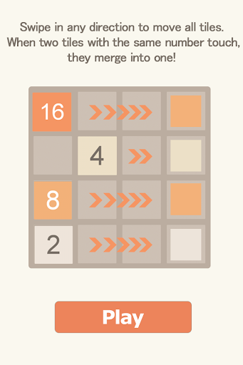 * Swipe the tiles and move them. When two tiles with same number meets, the sum will be shown on one tile!