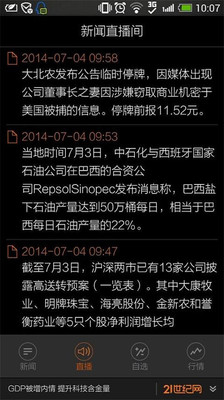 21世纪网新闻客户端,中国财经新闻第一应用,重新诠释“原创财经”的力量。作为中国最具影响力的专业财经门户,21世纪网独家报道过“酒鬼酒塑化剂”“光大乌龙指”等新闻,在中国同类财经网站中谷歌PR值高达8,为同类网站之首。今夏,全新打造的新闻客户端 21世纪网V2.0,主打原创财经新闻和深度策划,并有机整合包括21报系在内的多个媒体资源,下设头条、推荐、财经、金融、公共、消费者报告等 12个频道, 更增设直播间、自选股和行情中心,提供股价推送提醒、盘口、公告、分析师等一站式炒股服务,是守护你的财富的好伙伴。