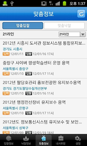 - 업종별, 지역별, 검색어 등에 맞게 입찰정보와 낙찰정보를 찾아 보실수 있습니다.